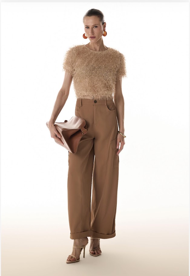 Blusa Tec Pelo Fleche D'or - Blusa feminina de manga curta feita para valorizar sua silhueta com modelagem ajustada e comprimento levemente encurtado, perfeita para ocasiões casuais e informais. A composição 100% poliéster proporciona leveza e facilidade na manutenção da peça. A textura com efeito felpudo traz dimensão e um toque sofisticado ao look, tornando a blusa uma escolha versátil para diversas situações do dia a dia.