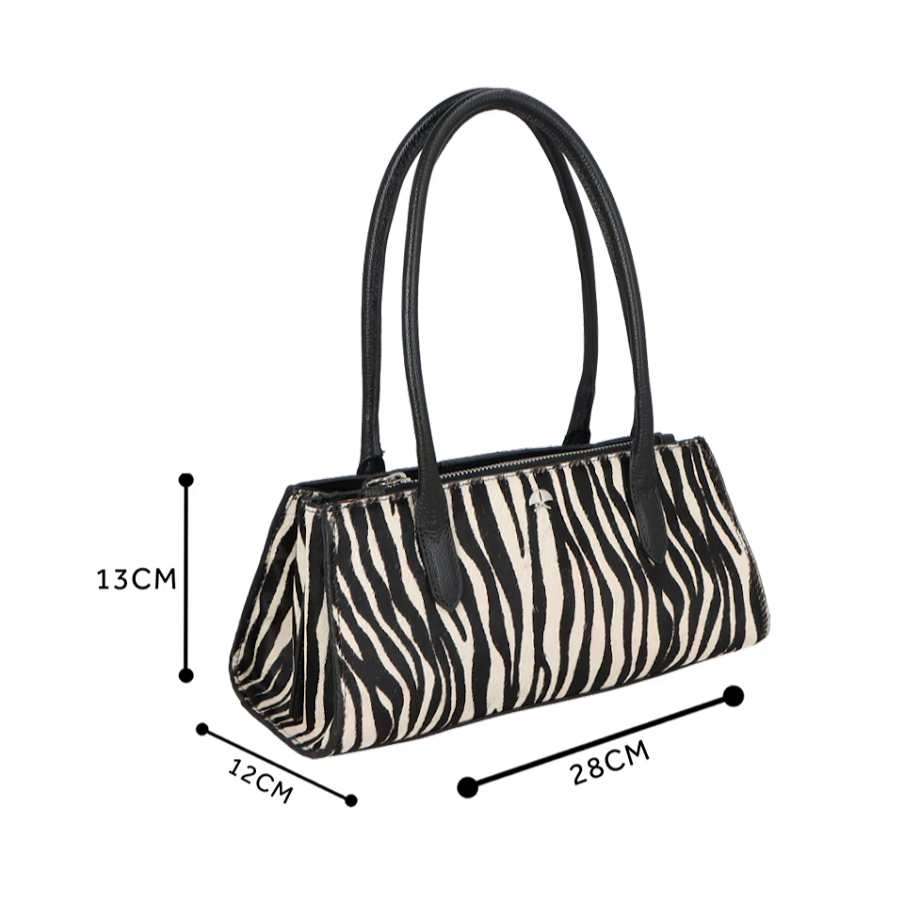 Bolsa Baguete Estruturada Pequena em Pelo Luiza Barcelos - Com design sofisticado e atemporal, esta bolsa pequena combina couro estampado, alças paralelas em couro liso preto, criando um contraste elegante e atual. As linhas estruturadas traduzem versatilidade e refinamento, enquanto as alças finas garantem praticidade no uso. O modelo possui três repartições internas, fechamento por zíper e detalhe de caliandra que finaliza a peça com assinatura sutil da marca.