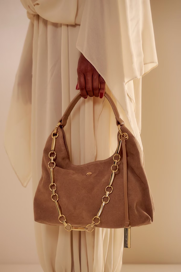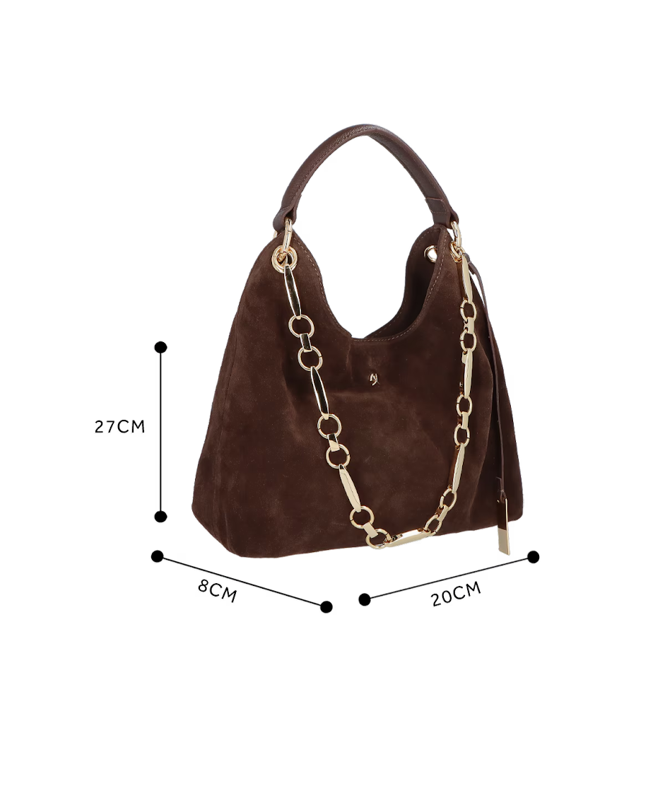 Bolsa Média em Camurça com Corrente Luiza Barcelos - Com seu visual ousado e moderno, a bolsa da collab Luiza Barcelos + Thássia Naves transforma qualquer produção. Naturalmente chic, o modelo em camurça combina atitude e sofisticação em uma proposta marcante. De formato médio, apresenta alça em couro liso, detalhe de corrente delicada no banho ouro e fechamento por imã, traduzindo o equilíbrio entre luxo e estilo contemporâneo.