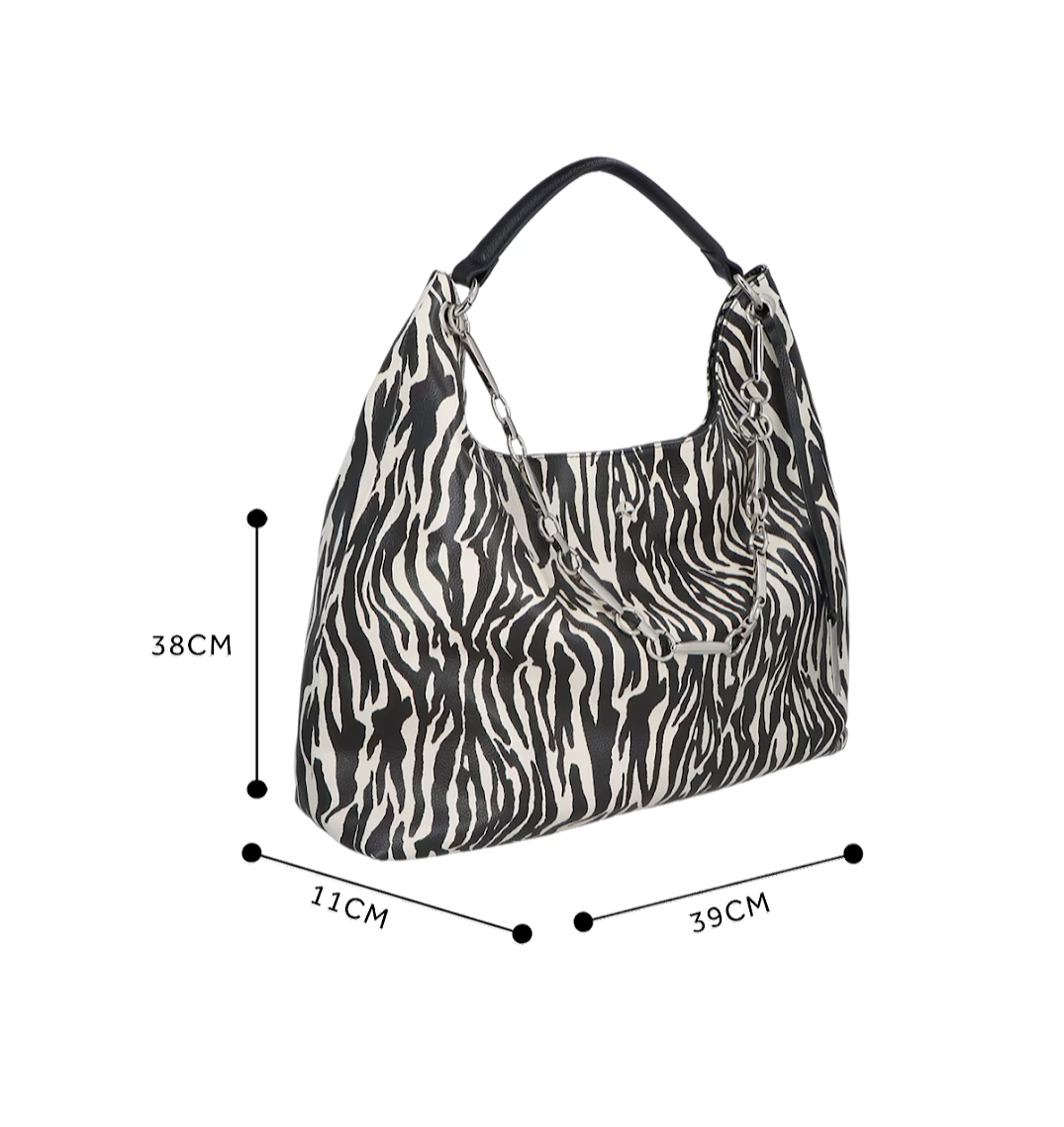 Bolsa Grande em Couro Zebra com Corrente Luiza Barcelos - Com seu visual ousado e moderno, a bolsa da collab Luiza Barcelos + Thássia Naves transforma qualquer produção. Naturalmente chic, o modelo em couro pelo com padronagem de zebra combina atitude e sofisticação em uma proposta marcante. De formato grande, apresenta alça em couro liso, detalhe de corrente delicada no banho níquel e fechamento por imã, traduzindo o equilíbrio entre luxo e estilo contemporâneo.