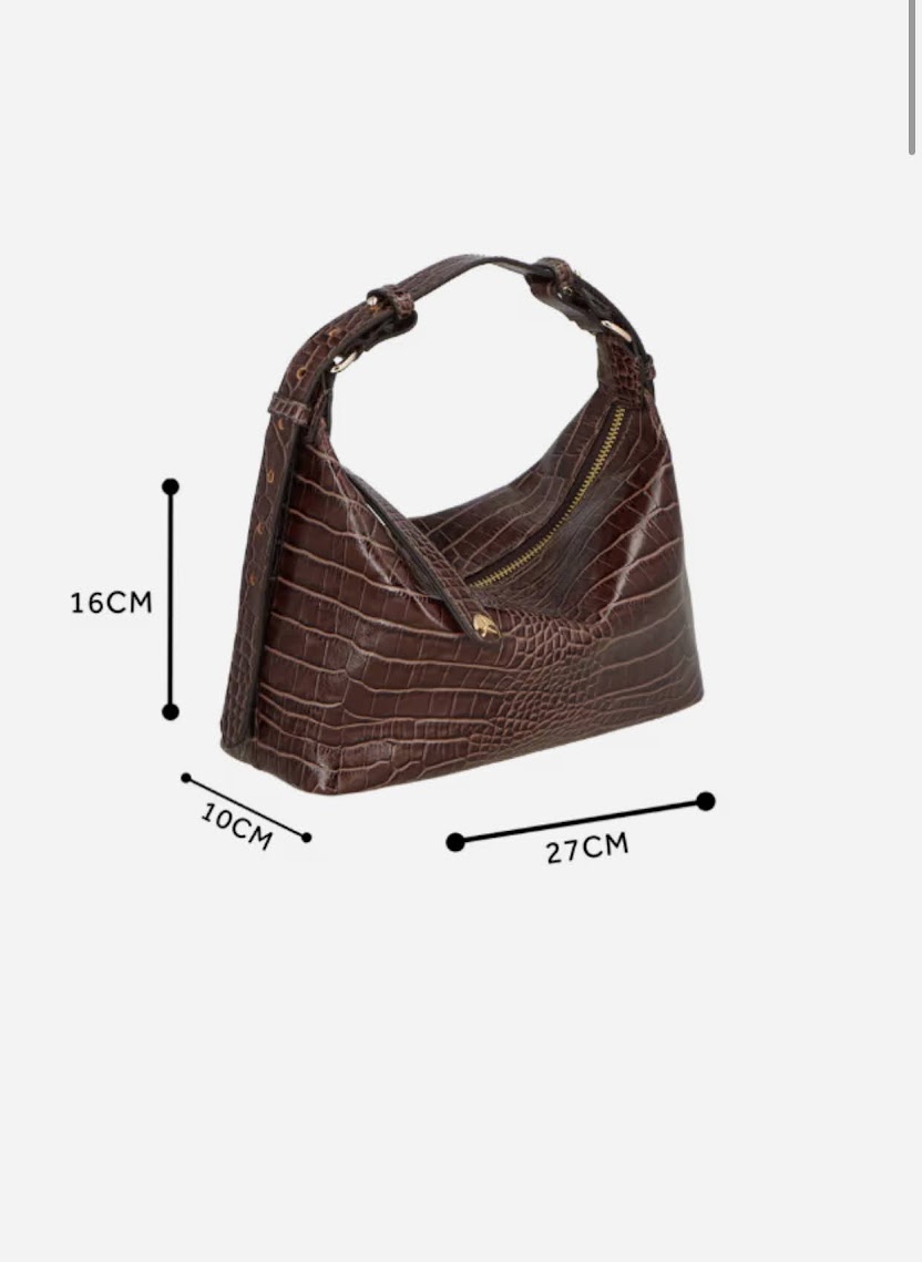 Bolsa Pequena em Couro Croco Luiza Barcelos - Com o estilo marcante de Thássia Naves e o design sofisticado de Luiza Barcelos, esta bolsa produzida em couro com textura croco é a definição de elegãncia atemporal e versatilidade moderna, sendo uma peça chave para quem busca elevar o estilo em qualquer ocasião. Com alça regulável, fechamento em ziper e detalhe metálico no puxador, acompanha o seu look de trabalho até o happy hour, adicionando uma dose instântanea de luxo e elegãncia.