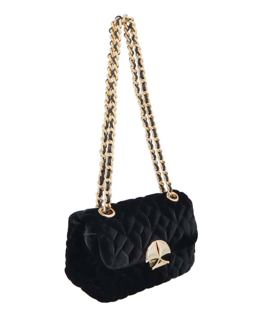 Bolsa Pequena em Veludo com Trama Acolchoada Luiza Barcelos - Em formato flap, a bolsa revela o veludo em sua expressão mais nobre: brilho intenso e textura envolvente que convidam ao toque. O fecho exclusivo em metal dourado cria um contraste preciso entre o aconchego do material e o brilho do metal, equilibrando luxo e leveza em uma peça de presença sofisticada e atemporal.