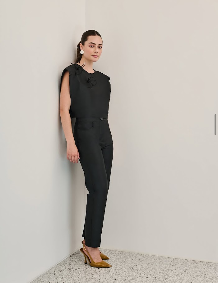 Calça em Alfaiataria Cigarrete Tafeta 613 Oficial - A calça cigarrete de tafetá é uma peça indispensável para composições elegantes e modernas. Confeccionada em tecido de alfaiataria com leve brilho acetinado, apresenta modelagem ajustada ao corpo e comprimento na altura do tornozelo, realçando a silhueta com sofisticação.O design minimalista e atemporal conta com cintura média, fechamento frontal por zíper e gancho interno, além de bolsos discretos, garantindo conforto e acabamento refinado. O toque do tafetá confere estrutura e elegância, tornando-a ideal para produções formais, eventos ou looks noturnos.