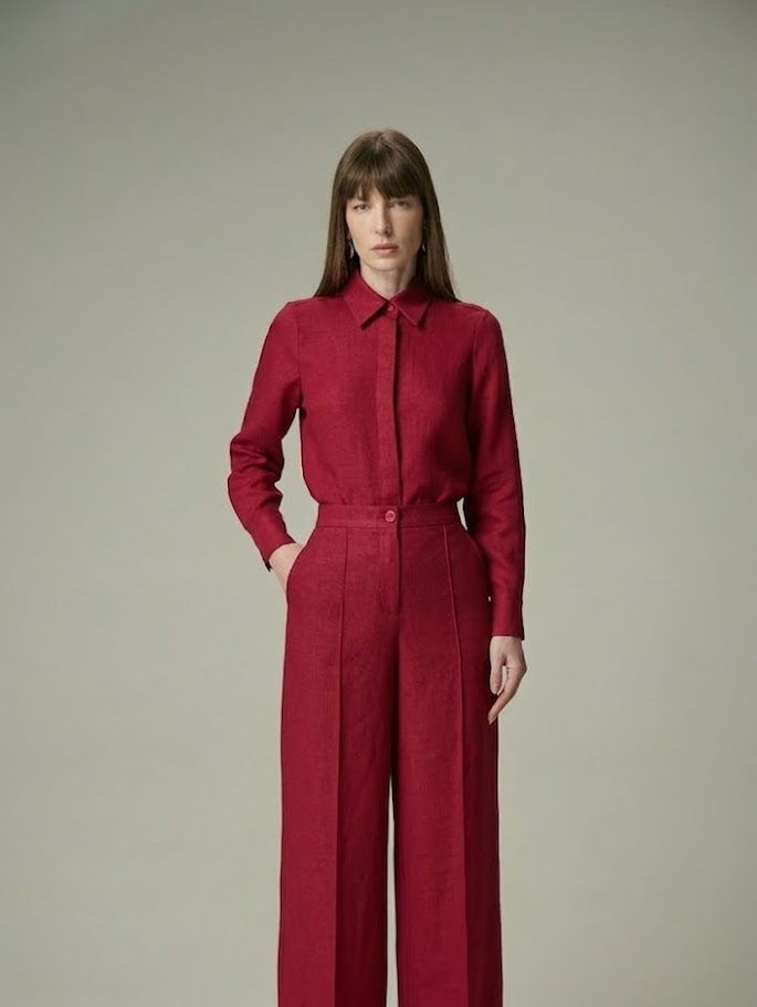 Combine com blusas mais ajustadas ou camisas para um visual mais formal ou casual chic. Para manter a qualidade do linho, recomenda-se lavar à mão ou em ciclo delicado e evitar o uso intenso de alvejantes.