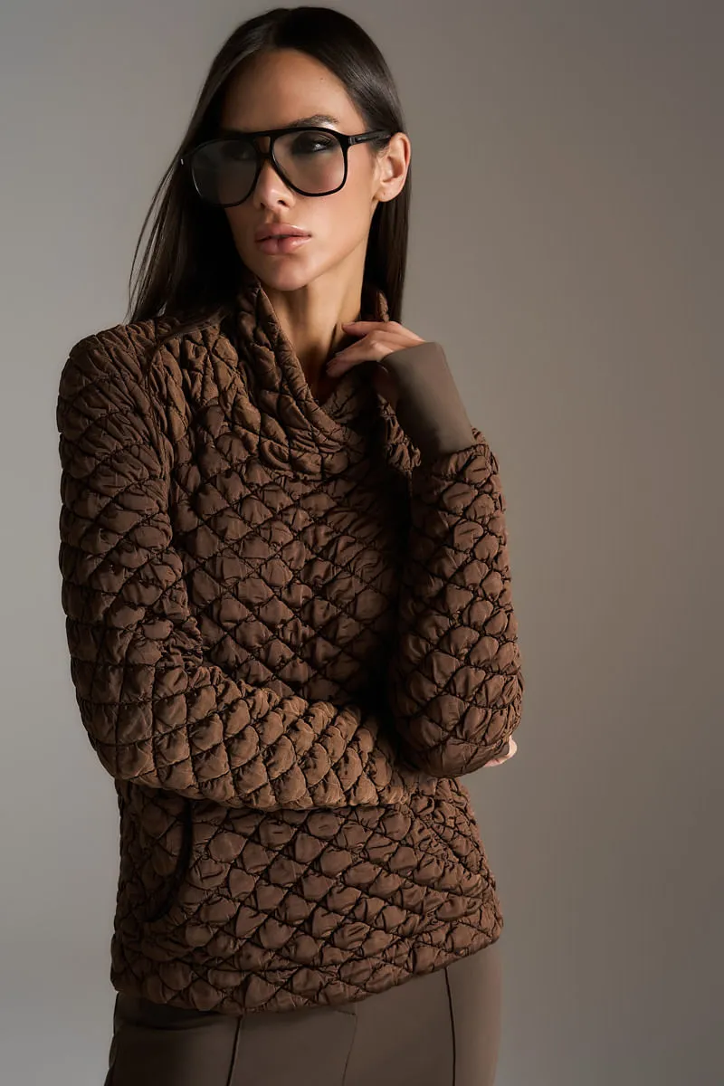 Casaco em malha matelassê com modelagem confortável e design funcional para atividades esportivas. A gola alta transpassada protege do frio enquanto os punhos com fenda permitem o uso como luvas, garantindo mais praticidade e versatilidade no uso.