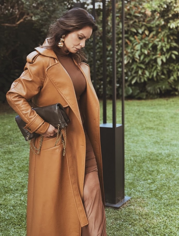 Um casaco longo feito em eco couro que une estilo e proteção contra o frio, perfeito para criar looks elegantes e confortáveis.