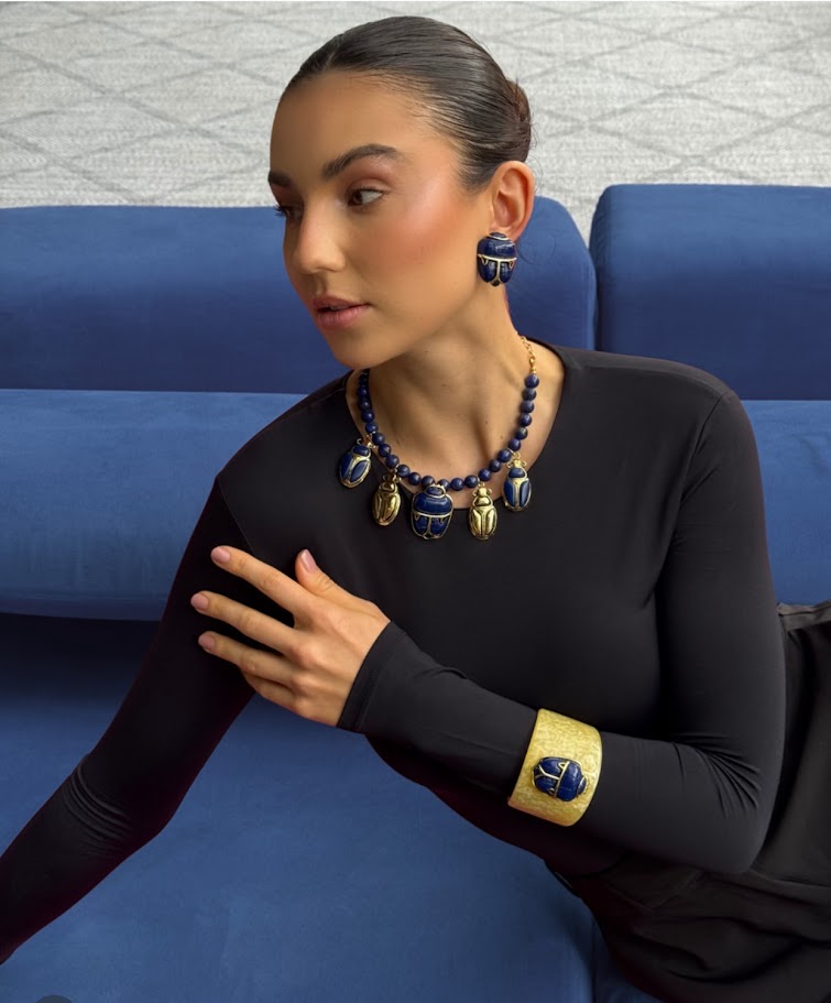 O Colar Curto Cinco Escaravelhos apresenta um design refinado que destaca cinco escaravelhos detalhados, simbolizando proteção e renovação. Esta peça curta valoriza o pescoço com elegância discreta, ideal para complementar tanto looks casuais quanto formais. Feito para quem aprecia joias com significado e estilo atemporal.