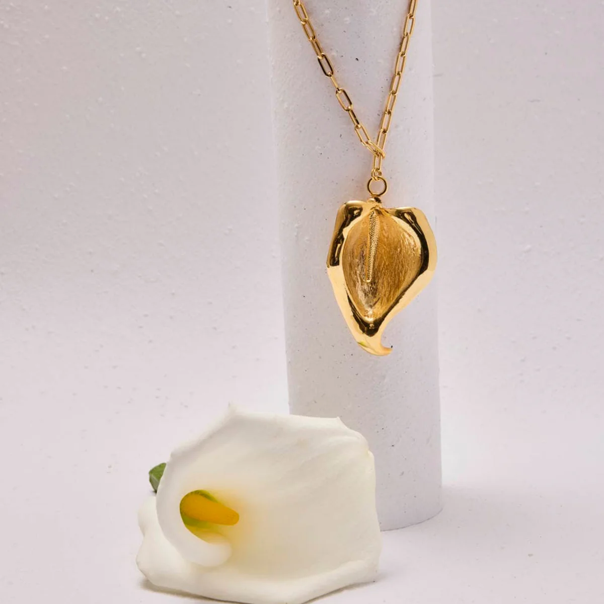 Colar longo Copo de Leite - Destaque sua elegância com o Colar Longo Copo de Leite, uma peça delicada que combina versatilidade e estilo. Seu design alongado realça qualquer look, trazendo um toque suave e sofisticado inspirado nas tradicionais pétalas de copo de leite. Ideal para ocasiões especiais ou para iluminar o dia a dia, esse colar valoriza sua beleza com simplicidade e charme. Complemente seu visual com uma joia que é sinônimo de delicadeza e bom gosto.