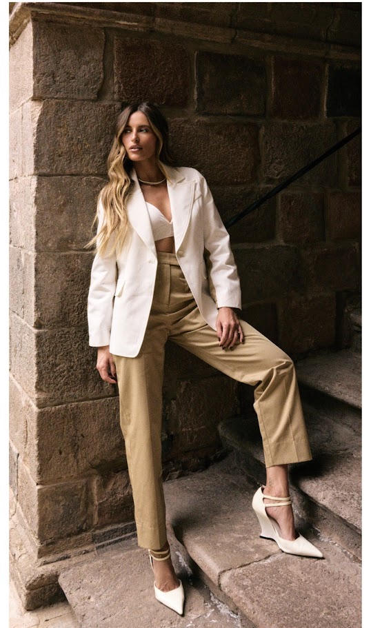 Conjunto em tecido estruturado que une estilo e conforto para ocasiões formais e casuais.
