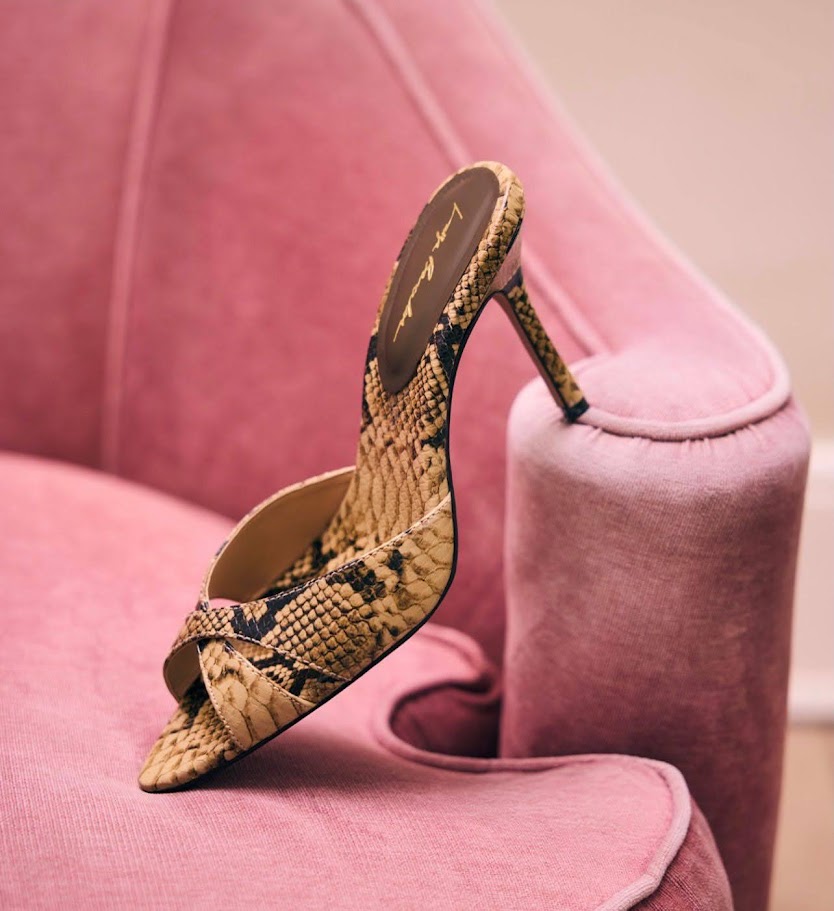 Mule Salto Alto Fino em Couro Piton Luiza Barcelos