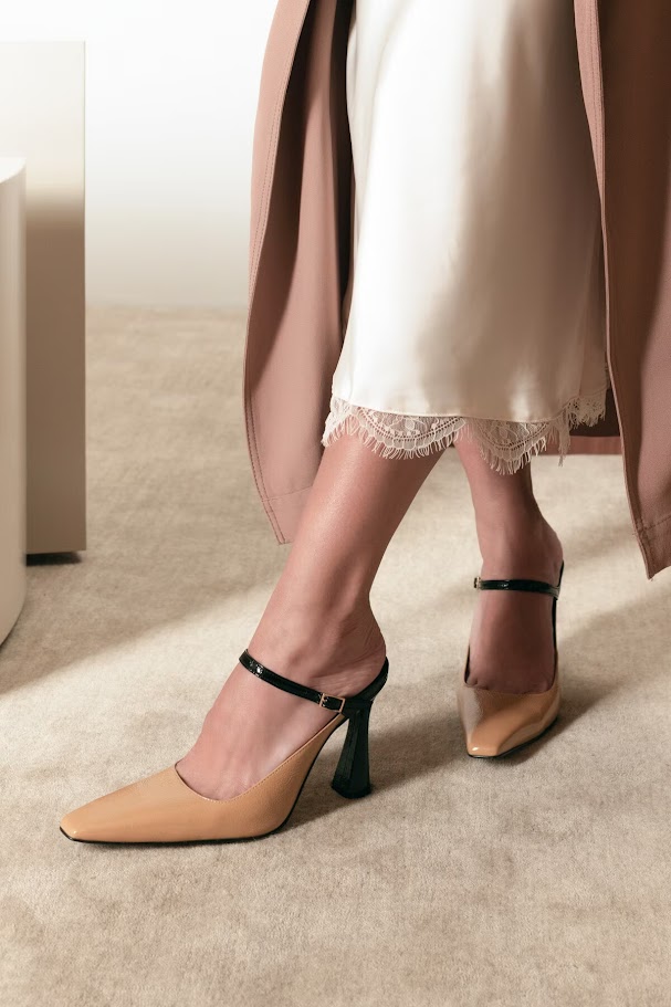 Mule Salto Alto Flare em Couro Verniz com Fivela Luiza Barcelos - Com design elegante e proporções alongadas, a mule fechada se destaca pela tira delicada no peito do pé, finalizada por fivela sutil. O jogo de cores entre o cabedal e o conjunto tira e salto cria uma dualidade harmoniosa, trazendo modernidade ao modelo sem perder equilíbrio visual. O salto alto em formato flare e o bico fino alongado completam a silhueta, resultando em uma peça sofisticada e contemporânea
