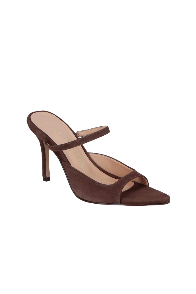 Mule Salto Alto Verniz Luiza Barcelos - Imponente e refinada, a nova mule Luiza Barcelos é o charme da estação. O modelo é produzido em camurça, possui abertura frontal com bico folha, salto alto e tira com elástico.