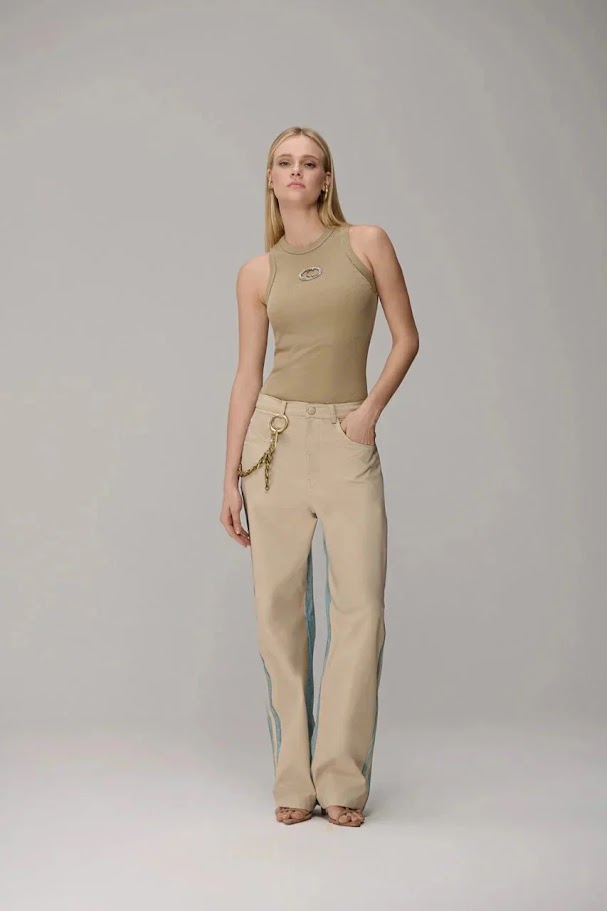 Regata Canelada com Detalhes Brilhantes - Regata sport-inspired feita em malha canelada, que oferece bom caimento e conforto. O acabamento em viés contrastante no decote e nas cavas adiciona um toque caprichado. A regata tem modelagem esportiva, perfeita para looks casuais com estilo. É ideal para usar em dias quentes, garantindo conforto. O tecido canelado é versátil e acompanha o movimento do corpo, enquanto o acabamento reforçado contribui para maior durabilidade da peça.